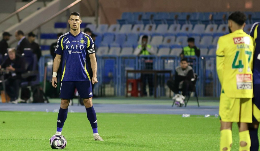 Ronaldo đứng trước một cú sút phạt cho Al Nassr. Ảnh: ANFC